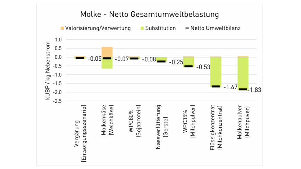 Die Ergebnisse zeigen, dass die meisten Valorisierungs- und Verwertungswege einen positiven Umweltnutzen aufweisen. Besonders die Valorisierung – also die Verarbeitung zu Lebensmitteln – bietet meist den höchsten ökologischen Vorteil, insbesondere wenn dadurch primäre, umweltintensive Produkte ersetzt werden. Auch die energetische Verwertung kann sinnvoll sein, vor allem wenn sie fossile Energieträger substituiert. Die Nutzung als Tierfutter kann je nach Nebenstrom ebenfalls ökologisch vorteilhaft sein. Der Nutzen hängt stark davon ab, welches Produkt durch das Nebenprodukt ersetzt wird.